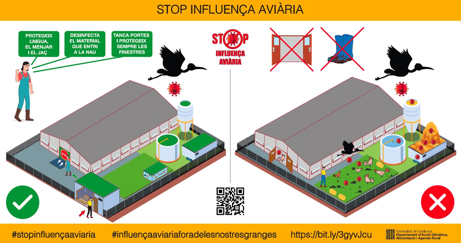 Davant la gravetat de les conseqüències que comporta la introducció de la grip aviària en les granges, la Direcció General d’Agricultura i Ramaderia de la Generalitat de Catalunya i l’Ajuntament de Sant Jordi Desvalls recordem a tots els particulars que mantenen aus de corral per autoconsum, la importància i l’obligació que tenen de comunicar aquesta activitat a l’Oficina Comarcal del Departament d’Acció Climàtica, Alimentació i Agenda Rural corresponent, així com notificar qualsevol sospita de la malaltia.