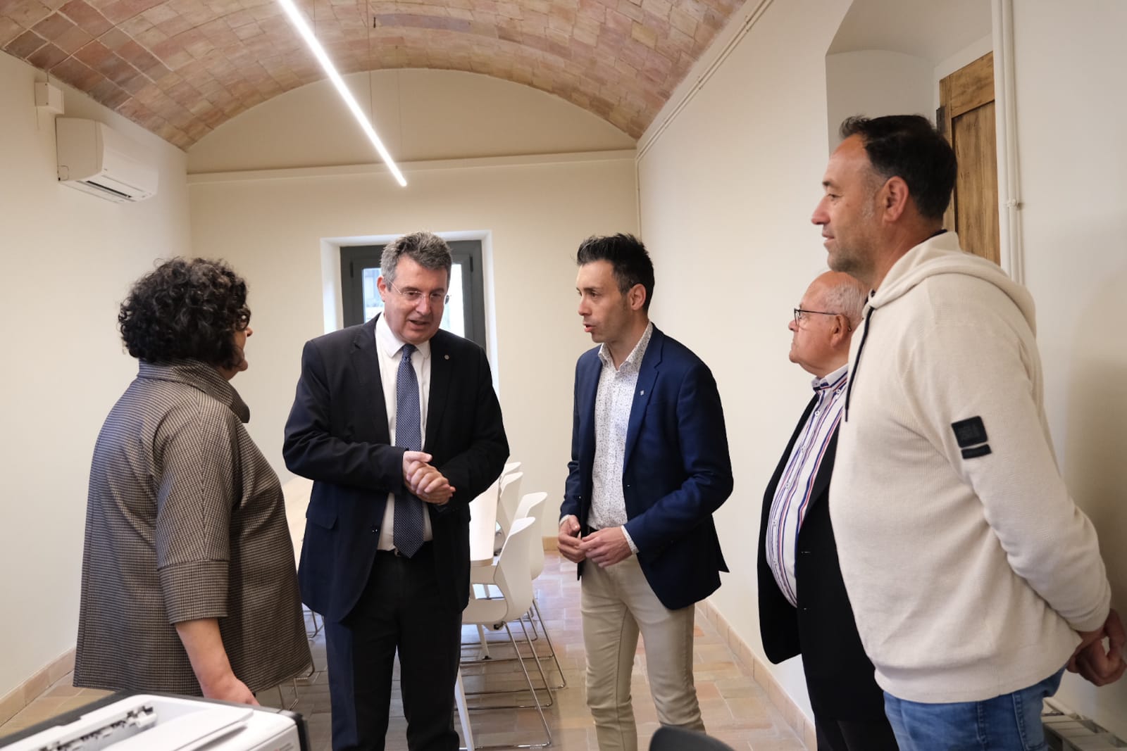 El president de la Diputació de Girona, Miquel Noguer i el director dels Serveis Territorials de Territori, Sergi Albrich, han visitat avui la remodelació de l’Ajuntament de Sant Jordi Desvalls. L’alcaldessa, Núria Martínez de la Casa, acompanyada d’alguns regidors, han mostrat les millores dutes a terme a les instal·lacions municipals entre les que destaquen la instal·lació d’un ascensor per garantir l’accessibilitat a persones amb mobilitat reduïda i el trasllat de l’Oficina Municipal d’Atenció Ciutadana (OMAC) a la planta baixa per facilitar l’atenció a la ciutadania.